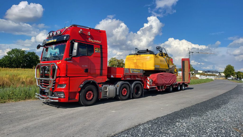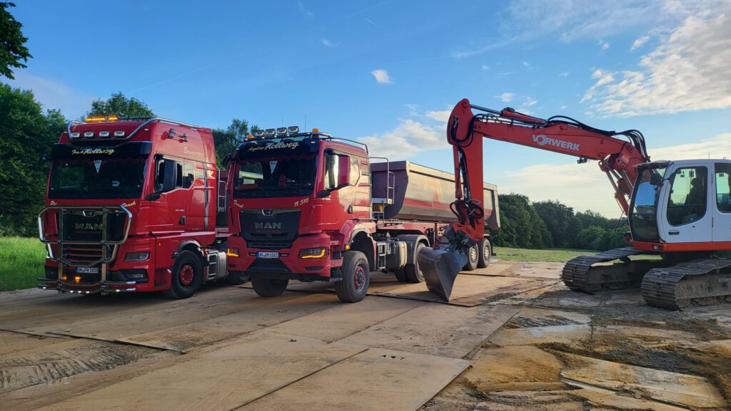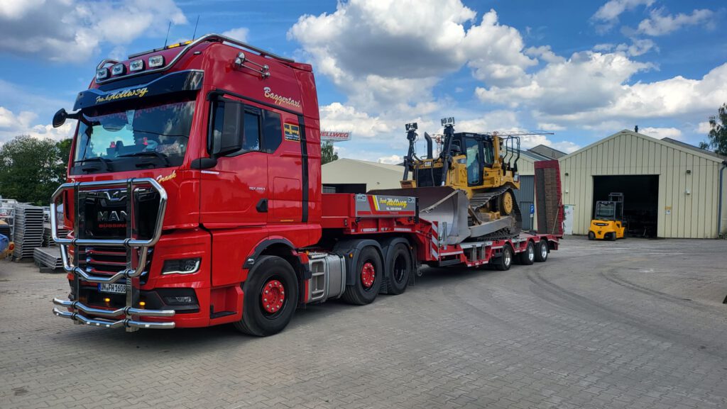 „Bei der Hochwasserkatastrophe in Hagen stand unser CAT318 stand fast vollständig unter Wasser, somit waren natürlich diverse Schäden vor allem an der Verkabelung und der Elektronik das Ergebnis dieses Ereignisses. […] Unser Transporteur der Firma Frank Hollweg hat ihn für den Rücktransport zu einer unserer Baustellen verladen. Frank Hollweg und sein Team sind extrem Flexibel und finden immer eine Lücke um uns auch kurzfristig unsere Geräte transportieren zu können. Ein Dank an Frank für seine Flexibilität.”
